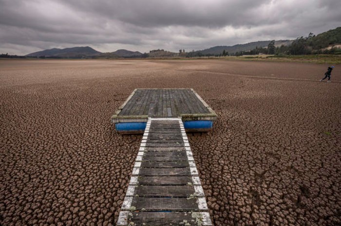 Dermaga wisata di Suesca, Kolombia, kurang dimanfaatkan karena permukaan air yang sangat rendah pada 12 Maret 2021. Menurut para ahli, kekeringan ini disebabkan oleh perubahan iklim. Foto: CBS News
