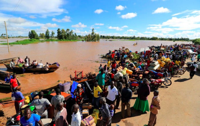 Pergeseran pola curah hujan telah menyebabkan banjir di beberapa wilayah di Kenya dan kekeringan parah di wilayah lain. Di sini, warga berkumpul dengan membawa barang-barangnya usai rumahnya terendam banjir pada Mei 2020. Foto: CBS News