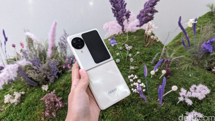 detikINET berkesempatan menggenggam Oppo Find N3 Flip sebelum resmi diluncurkan di Indonesia. Pihak Oppo Indonesia belum mengungkap spesifikasi lengkap Find N3 Flip, dan baru membagikan kisi-kisi soal fitur unggulannya saja. Foto: Virgina Maulita Putri/detikINET