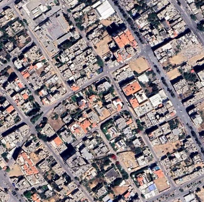 Sebuah satelit menunjukkan kerusakan parah pada daerah pemukian di kota Gaza dan Beit Hanoun, sebuah kote di tempi timur laut jalur Gaza. Ini potret sebelum terjadi serangan. Foto: Maxar Technologies