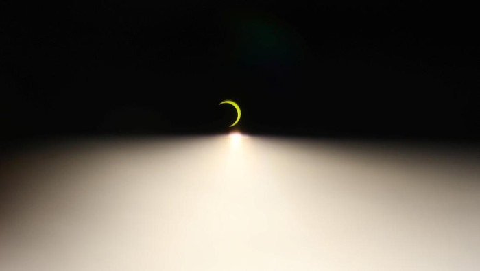 Tak mau kalah, fenomena matahari dan bulan sejajar ini juga terlihat sangat sempurna dari New Mexico, Amerika Serikat.