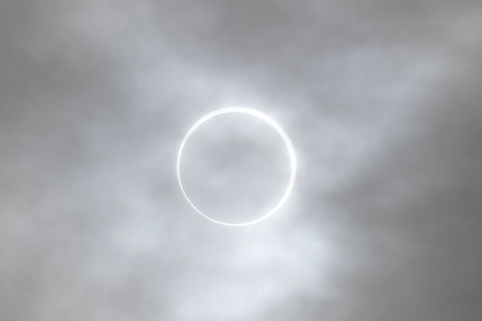 Namun memang berbeda-beda pengalaman yang dirasakan di setiap tempat. Salah satunya Tayfun Coskum, seorang fotografer, yang mengabadikan gerhana yang diselimuti oleh awan tipis. Foto:Β (Tayfun Coskun/Anadolu via Getty Images).