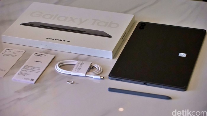 Inilah isi kemasan Samsung Galaxy Tab S9 FE. Foto: Adi Fida Rahman/detikINET