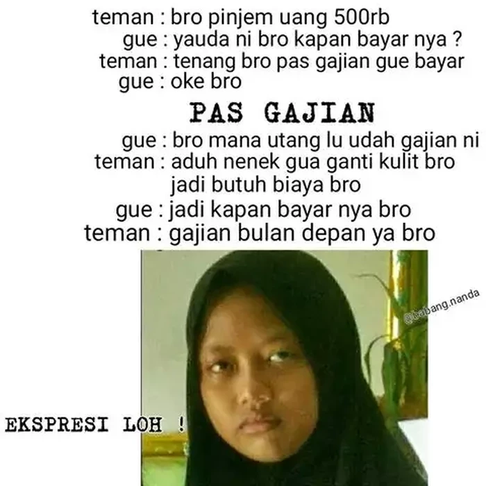 Reaksi ketika dengan alasan orang yang susah bayar utang. Foto: Facebook/Alfikri Saga