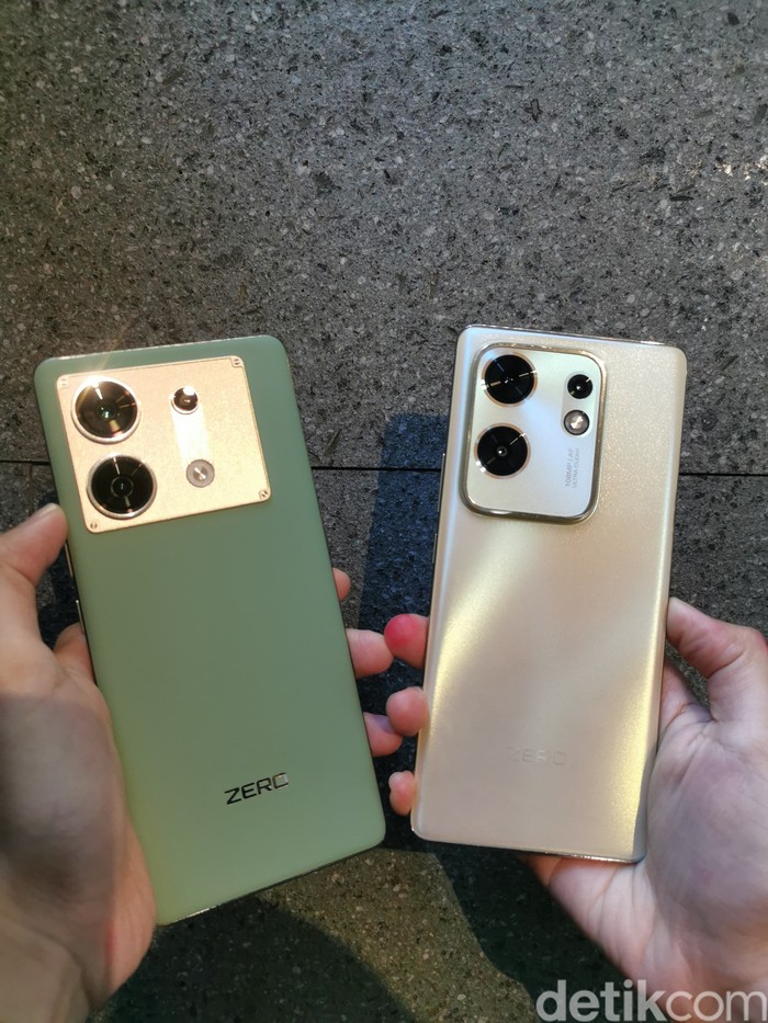 Infinix Zero 30 hadir dalam tiga pilihan warna menawan, yakni Misty Green, Pearly White dan Sunset Gold. Sementara itu, Infinix Zero 30 5G juga hadir dalam tiga varian warna yakni Golden Hour, Rome Green, dan Fantasy Purple. Foto: detikINET/Josina