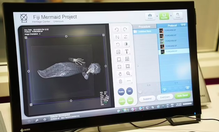 Kini, rahasia terungkap setelah putri duyung itu dirontgen dan CT scan untuk pertama kalinya untuk mengungkap sifat aslinya. Foto: Norse Media via Pen News