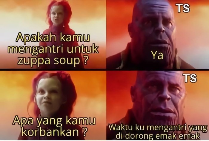 Tim mejeng dan cari pasangan atau tim cari makan? Foto: memecomic.id
