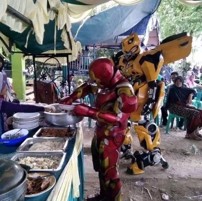 Iron Man dan Bumblebee-nya belum makan dari pagi. Foto: Instagram/lelucon.seru