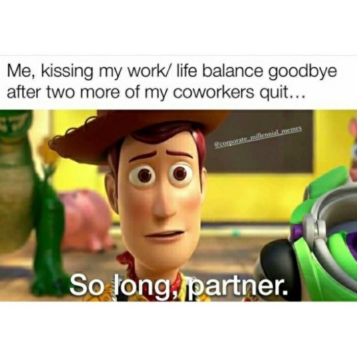 Resign juga apa nggak, ya? Foto: Instagram/corporate_millennial_memes