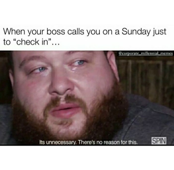 Siapa nih yang Minggu-nya masih dihubungi atasan untuk bahas kerjaan? Foto: Instagram/corporate_millennial_memes