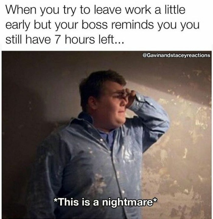 Ternyata baru dua jam kerja. Foto: Instagram/corporate_millennial_memes
