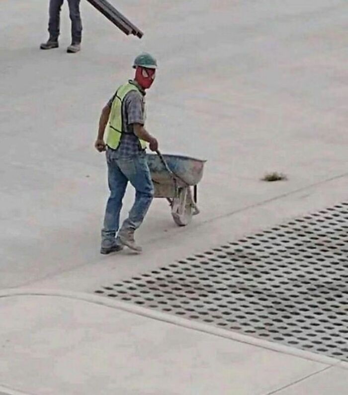 Spiderman sekarang bekerja sebagai tukang bangunan. Foto: Bored Panda