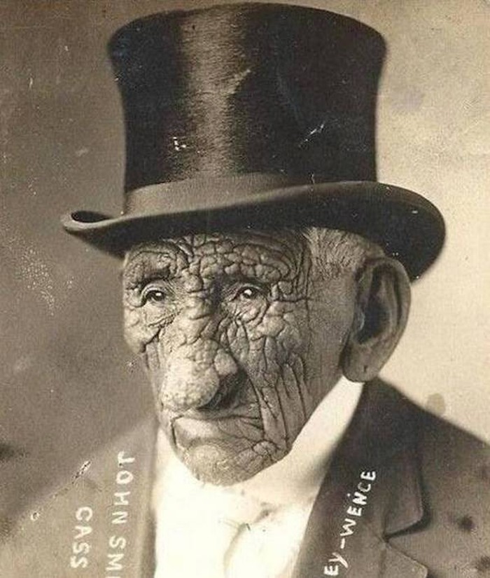 John Smith adalah seorang suku Indian Chippewa dari Minnesota yang mengaku hidup hingga 137 tahun. Jauh sebelum kematiannya tahun 1922, orang Chippewa menyebutnya sGa-Be-Nah-Gewn-Wonce, atau "daging berkerut", karena wajahnya berkerut secara mencolok. Namun, ada juga yang mengatakan bahwa penampilan wajahnya disebabkan oleh penyakit dan bukan karena usia. Meskipun usia aslinya masih diperdebatkan, nisannya di Cass Lake, Minnesota masih mencantumkan tahun kelahirannya sebagai 1784. (Foto: allthatsinteresting)