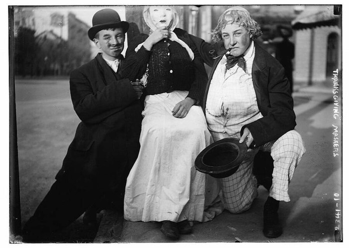 Kutipan tahun 1899 dari The New York Times foto ini mengingatkan kita pada era ketika Thanksgiving lebih mirip dengan Halloween. Dengan orang-orang berkostum berbondong-bondong keluar untuk merayakan hari penuh syukur ini, hari raya ini dikatakan sebagai waktu tersibuk dalam setahun bagi para pedagang topeng dan sejenisnya. Namun pada tahun 1920-an, tradisi ini mulai memudar dan versi modern Thanksgiving semakin mengakar. (Foto: allthatsinteresting)