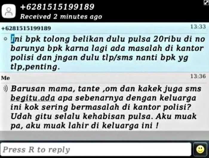 Nanti SMS penipuan atas nama ibu, nanti lagi pura-pura jadi bapak, pusing aku tuh! Foto: Dagelan