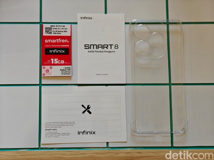 InfinixΒ memberikan case transparan, buku petunjuk, kartu garansi dan perdana SIM Card Smartfren, Foto: Adi Fida Rahman/detikINET