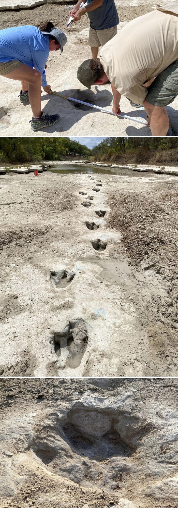 Jejak Kaki Dinosaurus ditemukan saat kekeringan, Jejak tersebut secara historis tertutup air dan sedimen. Diperkirakan berusia lebih dari 113 Juta tahun. Foto: Demilked