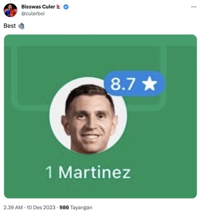 Kiper Aston Villa Emi Martinez yang juga mantan pemain Arsenal tadi malam ciamik sekali mainnya. Foto: X