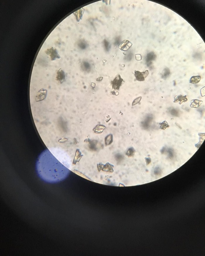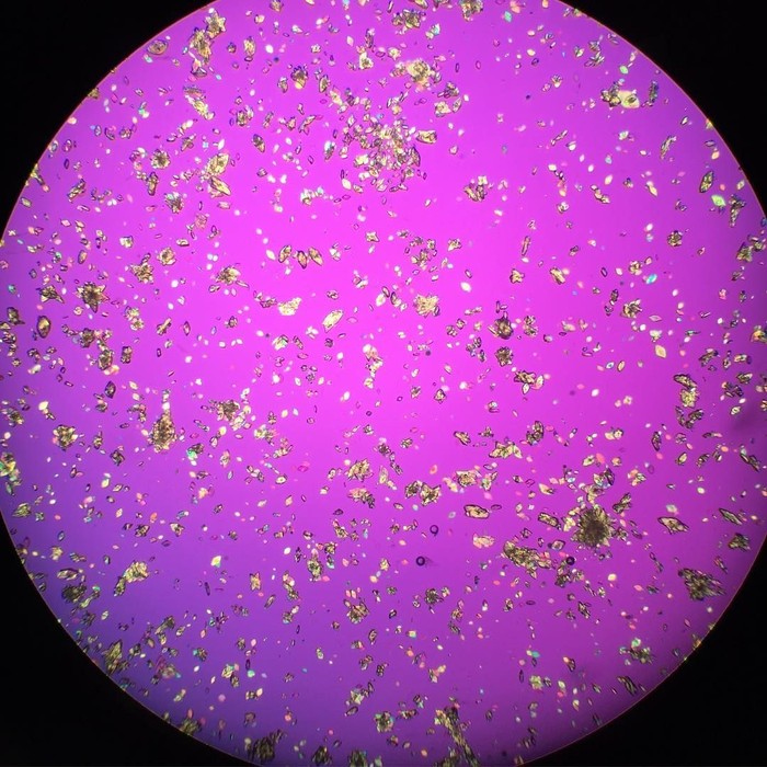 Urine itu akan dicek di bawah lensa mikroskop untuk melihat apakah ada kristal yang terbentuk di persendian.Β Foto: Instagram/gralabiol