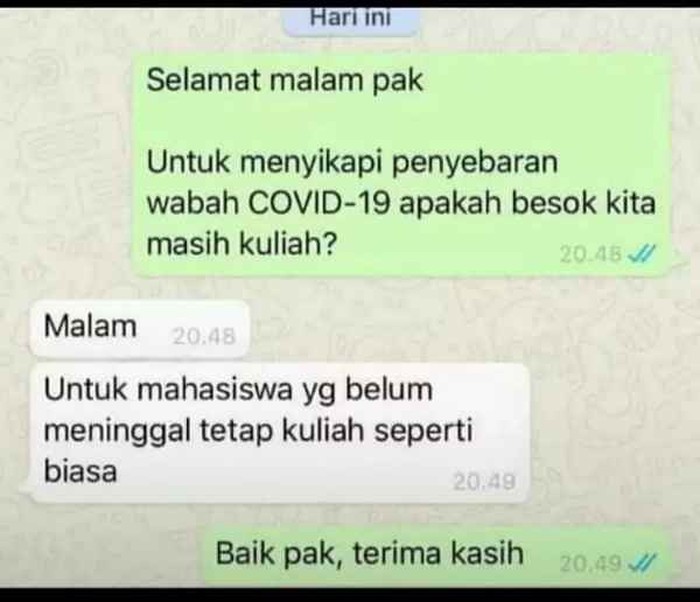 Bersiaplah dengan jawaban tidak terduga dosen. Siap deh, Bapak yang punya kuasa. Foto: Instagram/dramakuliah