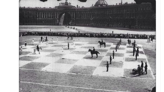Catur manusia dimainkan 100 tahun lalu di Leningrad, Uni Soviet. Foto: Twitter/HistoricalStuff