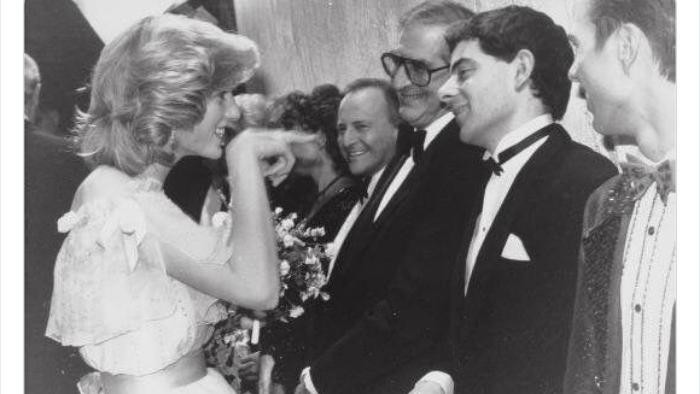 "You!" kata Putri Diana ketika bertemu aktor Rowan 'Mr Bean' Atkinson pada 1984. Foto: Twitter/HistoricalStuff