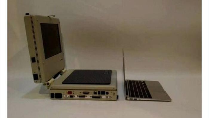 Perbedaan laptop Apple selisih 25 tahun. Foto: Twitter/HistoricalStuff