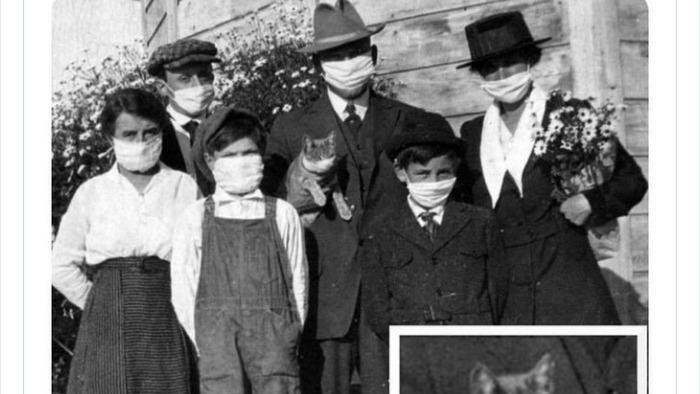 Foto keluarga saat wabah Flu Spanyol melanda di 1918. Foto: Twitter/HistoricalStuff