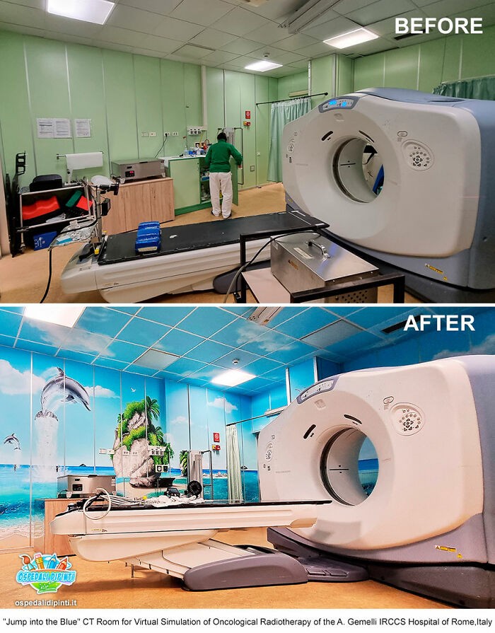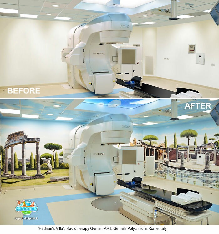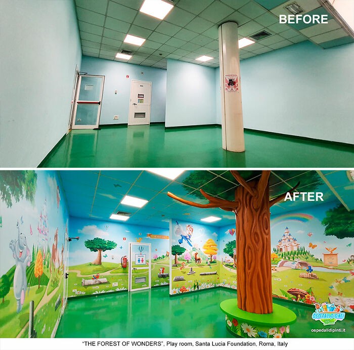 Kepada Boredpanda, sang seniman mengatakan Proyek Ospedali Dipinti lahir pada tahun 2012, lebih dari 25 rumah sakit dan lebih dari 7300 m2 dekorasi telah dibuat. Ide tersebut lahir setelah realisasi pertama pengerjaan bunker radioterapi di Poliklinik Gemelli di Roma. Foto: Instagram/ospedalidipinti/
