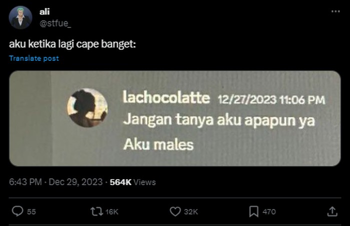 Ketika capek dengan semua masalah kehidupan kayaknya nih. Foto: (Twitter).