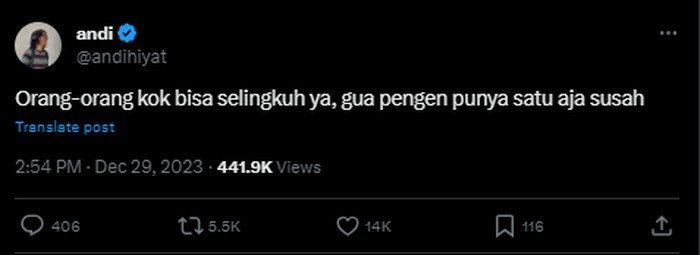 Jadi jangan kasih kesempatan ke orang yang pernah selingkuh ya? Foto: Twitter.