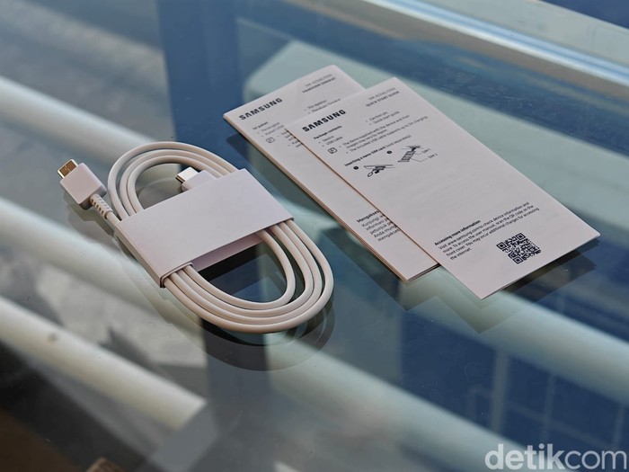 Samsung hanya menyertakan kabel data dan buku petunjuk. Foto: Adi Fida Rahman/detikINET
