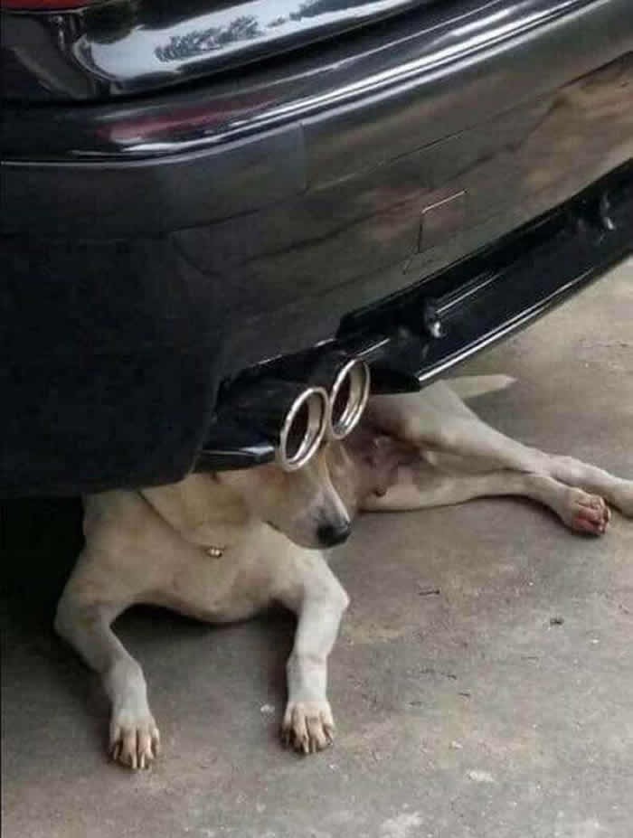 Anjingnya pakai kacamata atau itu knalpot? Foto: 121clicks