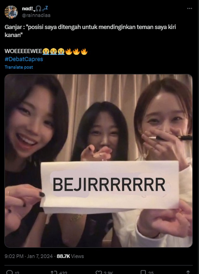 Kayaknya emang lebih adem saat debat cawapres ya. Foto: (Twitter).