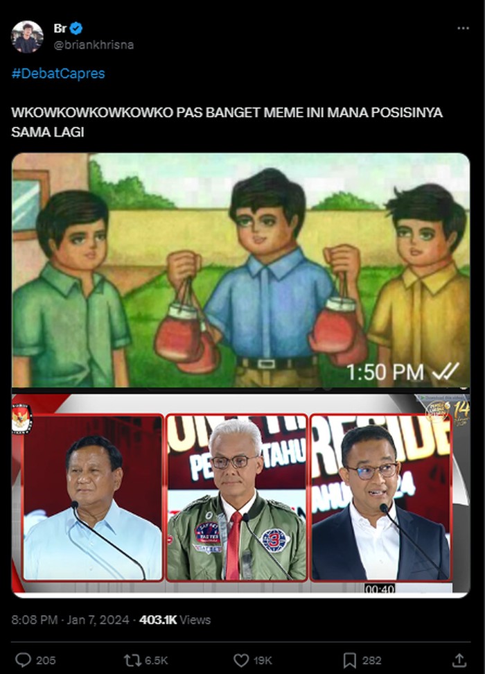 Tapi mukanya nggak lemes gitu kok pas ngomong di debat capres Pilpres 2024 yang ketiga tadi. Foto: (Twitter).
