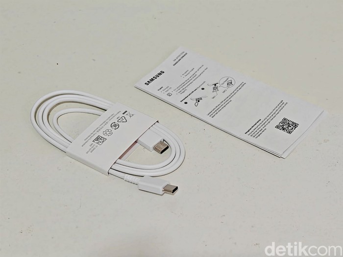 Samsung memberikan kabel data USB-C, panduan penggunaan dan garansi. Foto: Adi Fida Rahman/detikINET