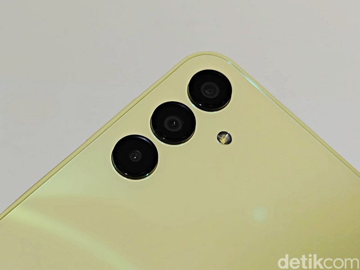 Galaxy A15 series dibekali tiga kamera belakang yang terdiri dari kamera utama 50 MP, kamera ultrawide 5 MP, dan kamera makro 2 MP. Di bagian depan disematkan kamera selfie 13 MP. Foto: Adi Fida Rahman/detikINET