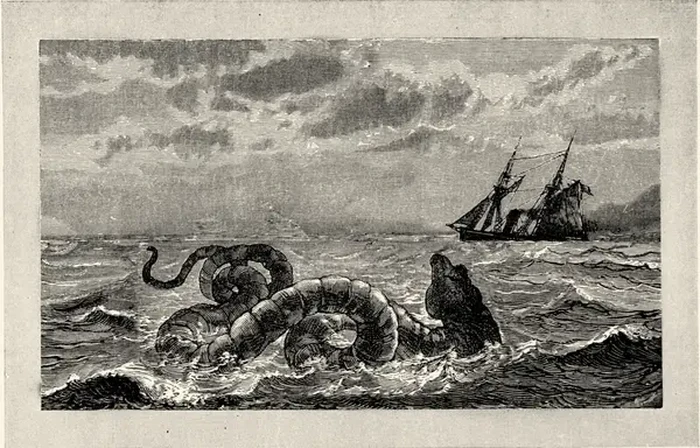 Ular berkepala naga:Β Sekitar 20 menit, awak HMS Daedalus, kapal perang Inggris, menyaksikan apa yang mereka klaim ular raksasa sepanjang 100 kaki berkepala naga. Tak percaya kru Daedalus? Makhluk ini terlihat untuk kedua kalinya oleh kapal Amerika Daphne, yang bahkan menembaknya dan mencoba mengikutinya, namun ia hilang di laut. Ilmuwan menilai kemungkinan besar mereka melihat paus, tapi apa sekelompok pelaut berpengalaman tidak mengetahui perbedaan antara ikan paus dan ular?Β Foto: Unwired