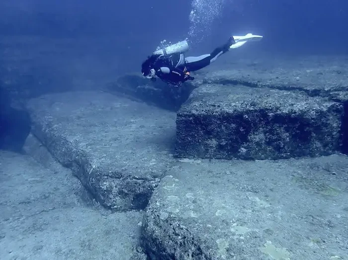 Monumen Yonaguni: Struktur mirip tangga raksasa ini ditemukan di 1985 dan menimbulkan kontroversi sejak saat itu. Banyak yang percaya ini buatan manusia dari peradaban kuno, namun ada pula yang percaya ini hanyalah formasi alam yang langka. Batu raksasa ini memiliki panjang lebih dari 50 meter dan lebar sekitar 20 meter.Β Foto: Unwired