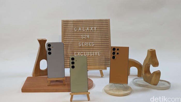 Ini dia Galaxy S24, Galaxy S24+, dan Galaxy S24 Ultra dalam pilihan warna yang tersedia secara eksklusif untuk pemesanan online lewat website resmi Samsung. Foto: Virgina Maulita Putri/detikINET