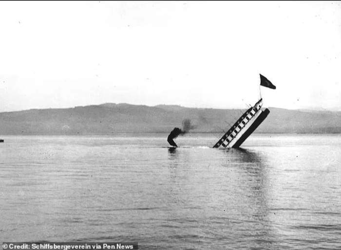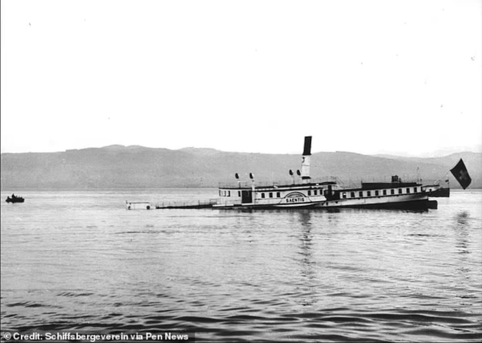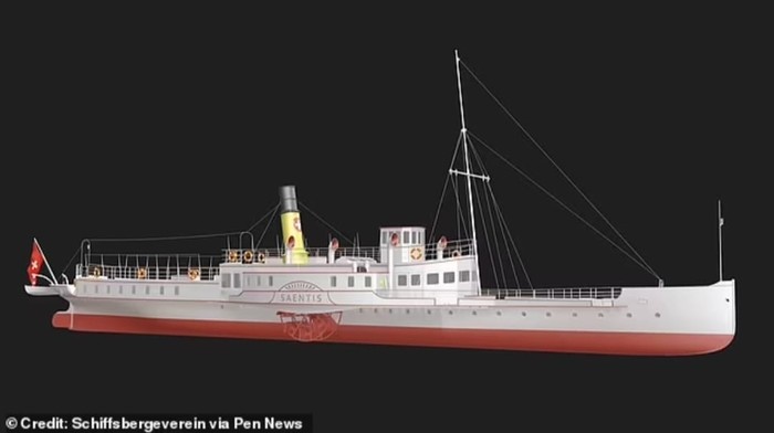 Kapal SΓ€ntis ditenggelamkan ke dasar Danau Constance di perbatasan Swiss-Jerman pada tahun 1933 karena dianggap tidak layak untuk berlayar namun terlalu mahal untuk dibuang. Foto: Schifssbergevere via Pen News