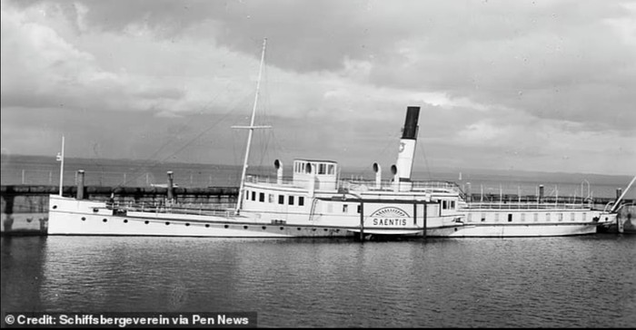 SΓ€ntis awalnya adalah layanan feri yang membawa penumpang berkeliling Danau Constance. Kapal ini beroperasi selama 40 tahun dan mengangkut hingga 400 penumpang sekaligus. Foto: Schifssbergevere via Pen News