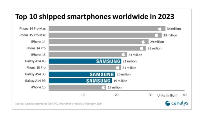 Jakarta - Lembaga riset Canalys mengungkap daftar HP paling laku di dunia pada 2023. Kira-kira ada yang kamu pakai?