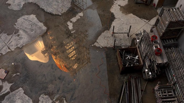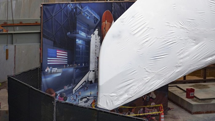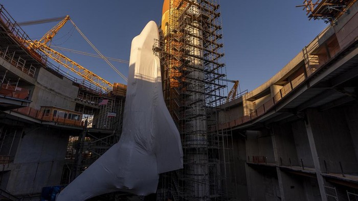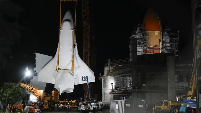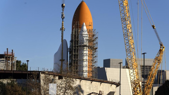 Pesawat ulang-alik ini akan menjadi bagian dari pameran di masa depan Samuel Oschin Air and Space Center, yang merupakan perluasan dari California Science Center.Β AP/Damian Dovarganes