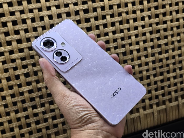Ini Oppo Reno 11 F 5G versi Coral Purple. Foto: Adi Fida Rahman/detikINET