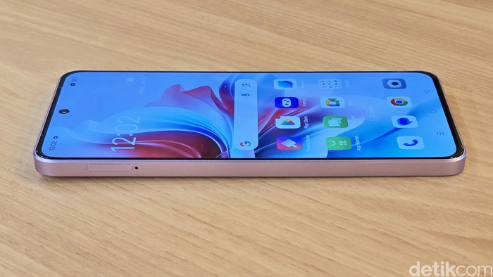 Reno 11 F mengusung layar AMOLED berukuran 6,7 inci dengan resolusi FHD+, 1,07 miliar warna dan refresh rate 120Hz. Layar ini juga mendukung HDR10+, memiliki kecerahan maksimum 1.100 nit. Foto: Adi Fida Rahman/detikINET