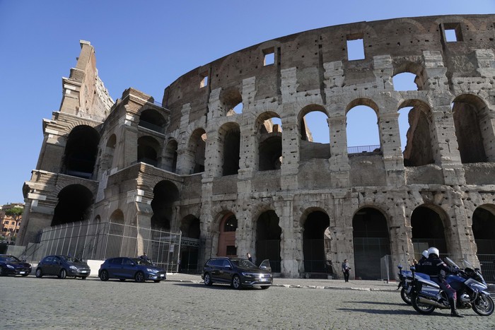 Proyek ini dimulai sekitar tahun 72 M oleh Kaisar Vespasianus, yang mempunyai kepentingan untuk mengamankan legitimasi dinasti Flavia dengan menciptakan pekerjaan umum besar-besaran untuk masyarakat Roma. Dia meninggal pada tahun 79 M ketika Colosseum sebagian besar telah selesai; putranya Titus mendedikasikannya pada tahun berikutnya dengan permainan 100 hari. Proyek ini akan melibatkan banyak sekali tenaga kerja; mungkin sebanyak 20.000-30.000 budak dipekerjakan untuk menambang batu dan membangun strukturnya. Foto: Jeff J Mitchell, Pool via AP