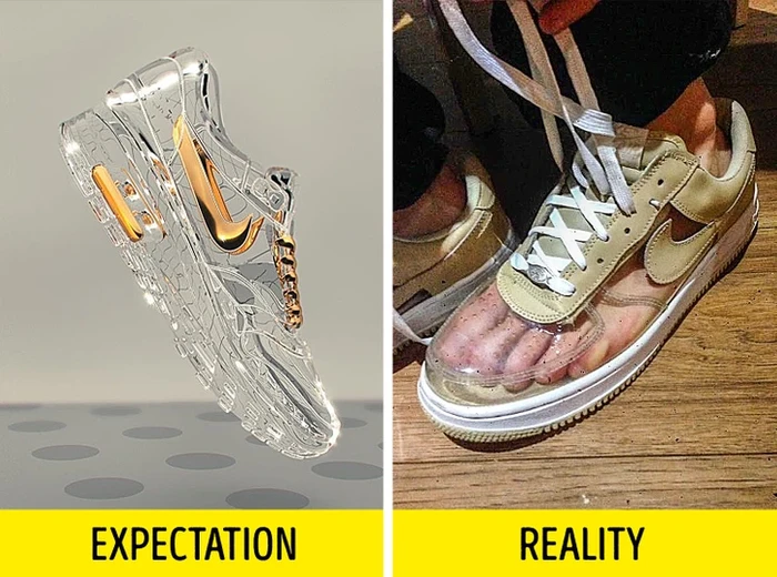 Sepatu Nike transparan, jauh banget sih sama di gambar. Foto: Brightside