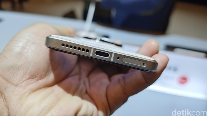 Di bagian bawah Xiaomi 14 Ultra terdapat speaker, port charger, mic, dan slot kartu SIM. Foto: Agus Tri Haryanto/detikINET