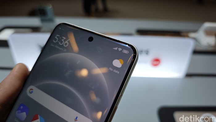 Dari sudut ponsel anyar ini, telrihat Xiaomi 14 Ultra dirancang dengan perpaduan flat screen dan desain curved edge. Foto: Agus Tri Haryanto/detikINET